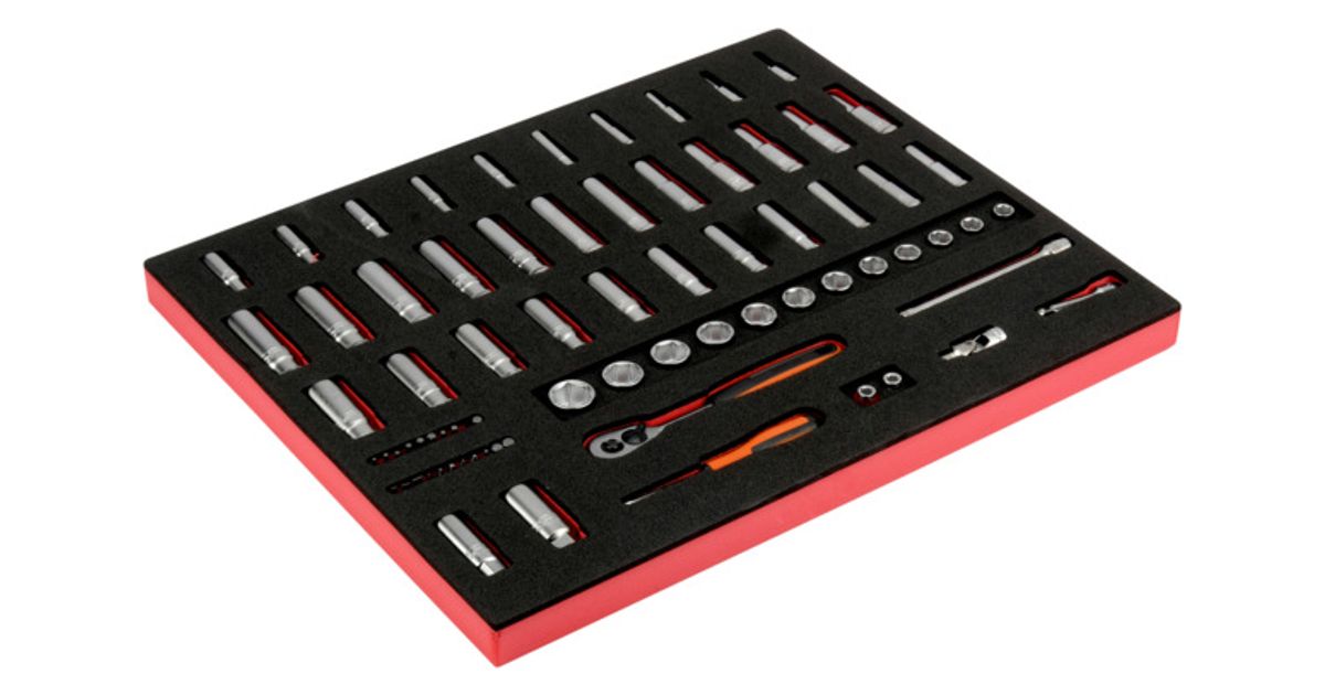 1/4" ja 3/8" socket set 75pcs in foam (S330L, S1612L, S0180L)