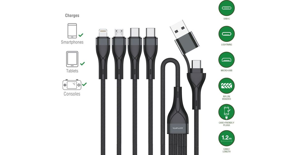 4smarts 4smarts USB-C/A Multi-Ladekabel 4in2 USB cable 1.2m, black