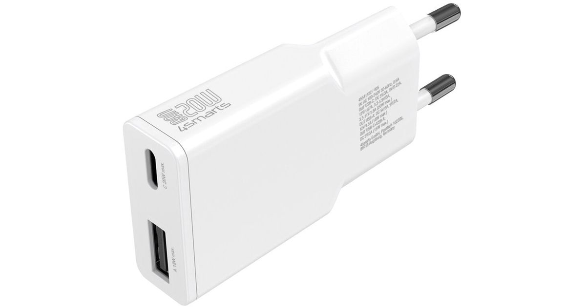 4smarts Ladegert PDPlug Duos Slim 20W GaN USB-C/A+USB-C Kabel