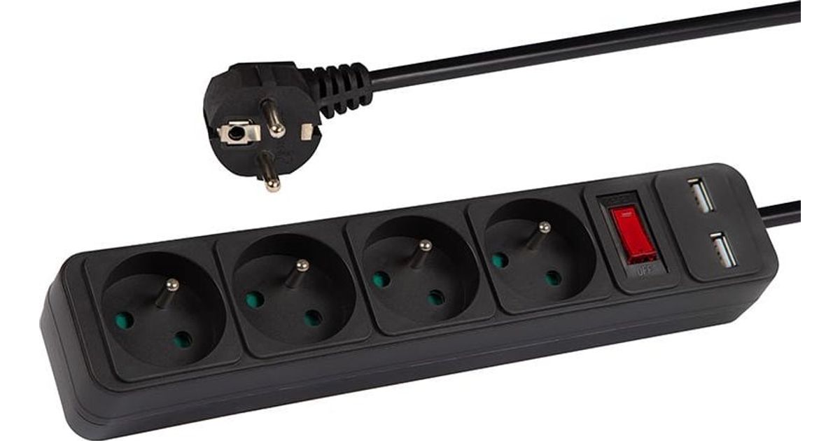 98-779# Przedłużacz sieciowy pr-470wsp/usb 4-gniazda+usb z uziemieniem+wyłącznik 5m czarny 3x1,5mm