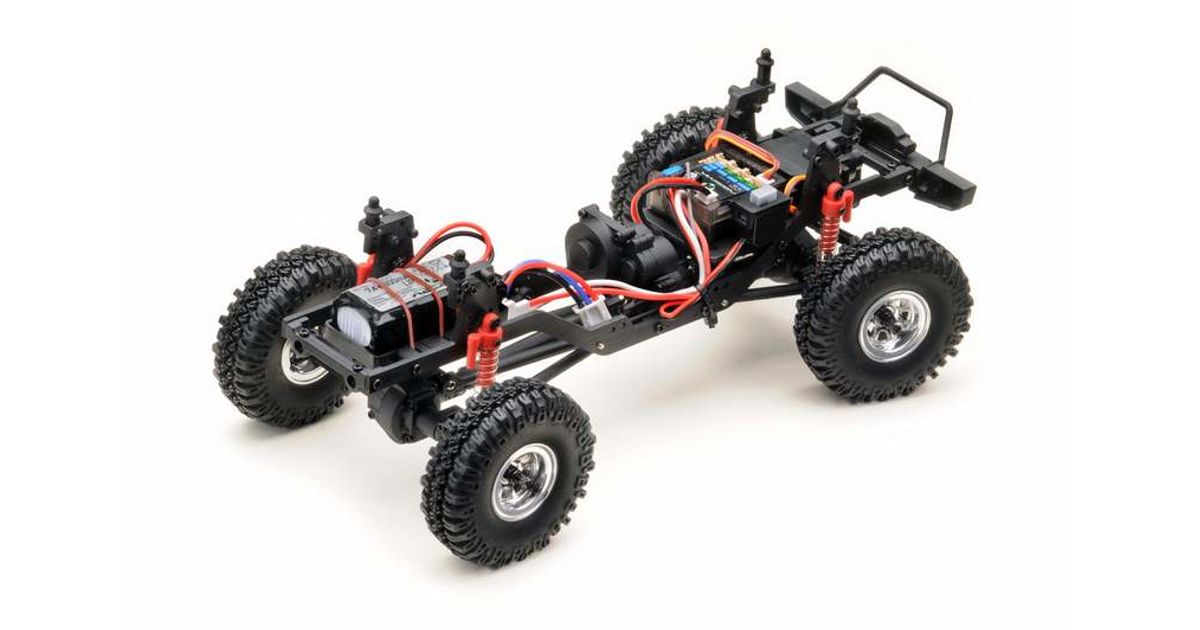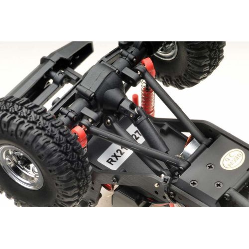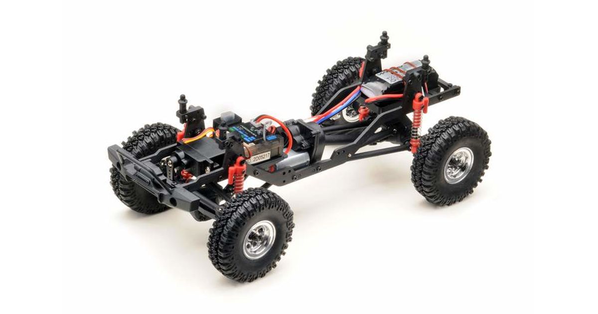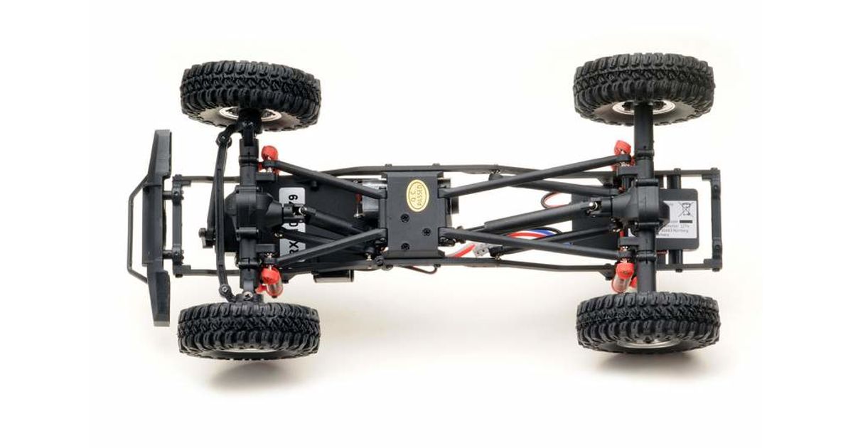 The chassis is in no way inferior to the crawler brothers in larger scales. A multilink chassis, fully locked differentials, telescopic drive shafts, a 3-stage high-performance transmission and, of course, all-wheel drive (4WD) ensure top performance. In addition, there is a "Drag / Mountain Brake" to stop simply even on the steepest slope.