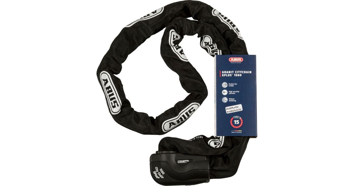 Secure your bike with the GRANIT City Chain 1060/170 lock from ABUS and enjoy the highest level of protection against theft. This robust chain lock offers security level 15, the highest level of the ABUS security system.