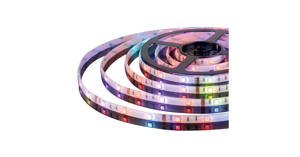 SMD LED strip with power consumption of 7 W. Colour of light: RGB. Length: 3m. Adapter for a dedicated power supply unit included.