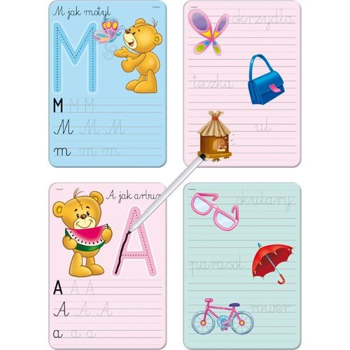 Bear Christopher Robin invites toddlers to write letters. This exercise helps Whiteboard marker, where you can write even a crooked and not on the line, because the cloth is all quickly wipe away again and you try to write a simple and beautiful the letter.