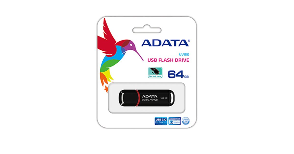 ADATA 64GB DashDrive UV150, 64 GB, USB Type-A, 3.2 Gen 1 (3.1 Gen 1), Cap, 9 g, Black