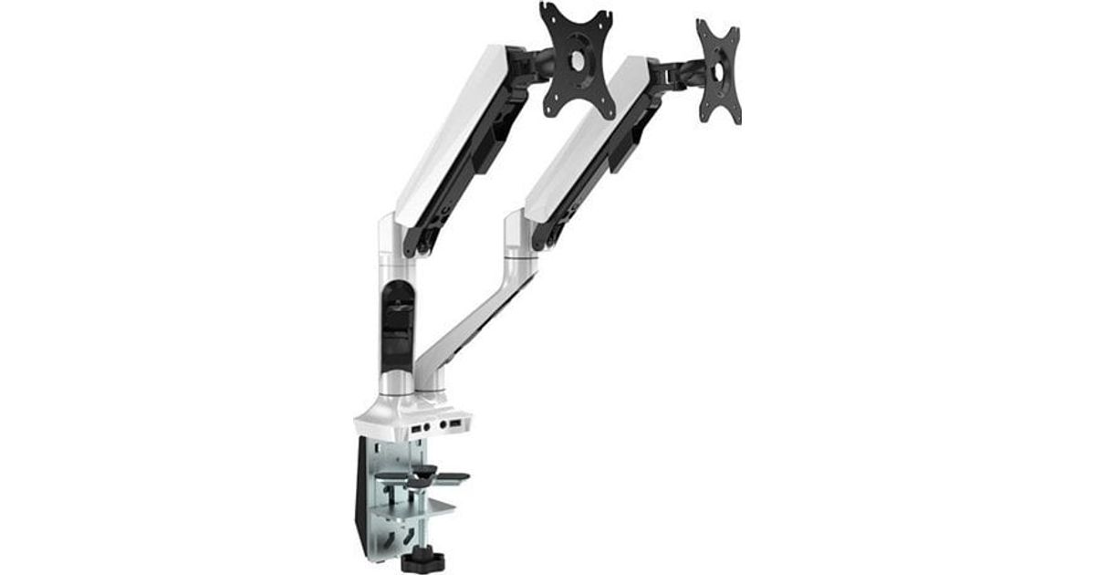 Adjustable monitor holder for 2 monitors, 2-9KG, clamp mount, 17"-30", USB HUB + Jack, 75x75/100x100, gray