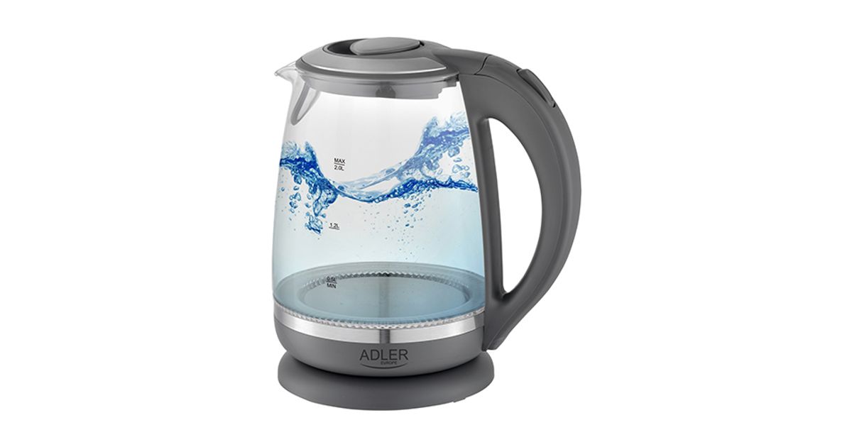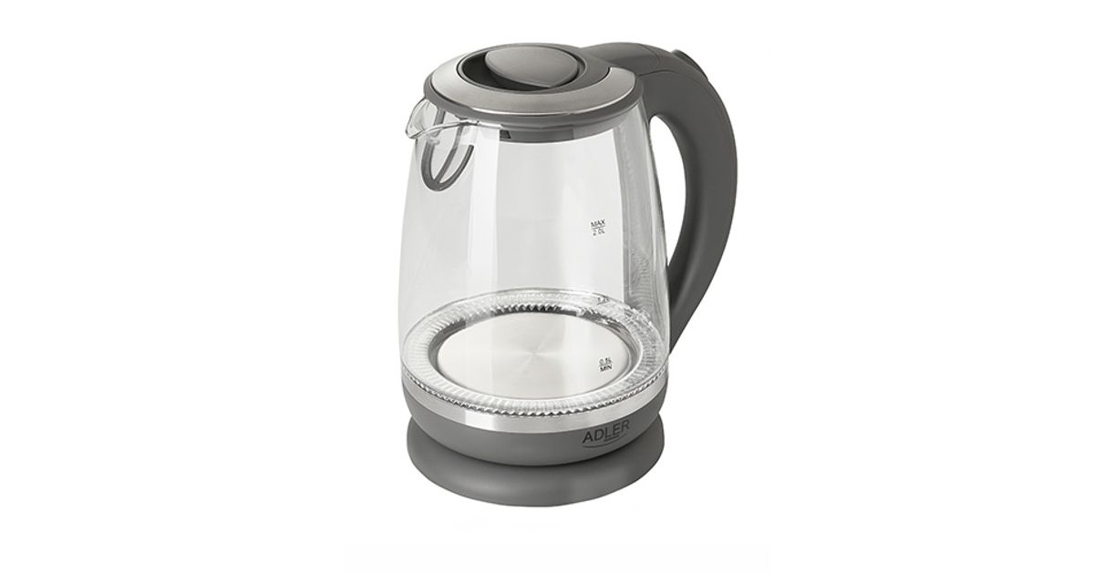 Adler AD 1286, 2 L, 2200 W, Grey, Transparent, Glass, Water level indicator