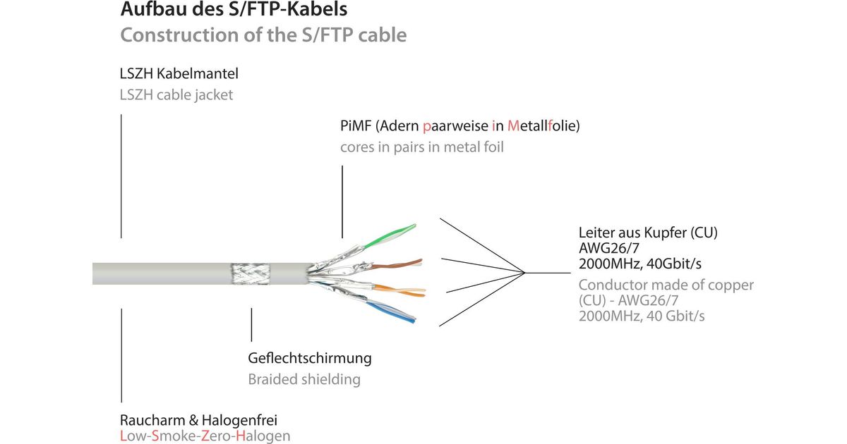 Alcasa 8080L-030, 3 m, Cat8.1, S/FTP (S-STP), RJ-45, RJ-45