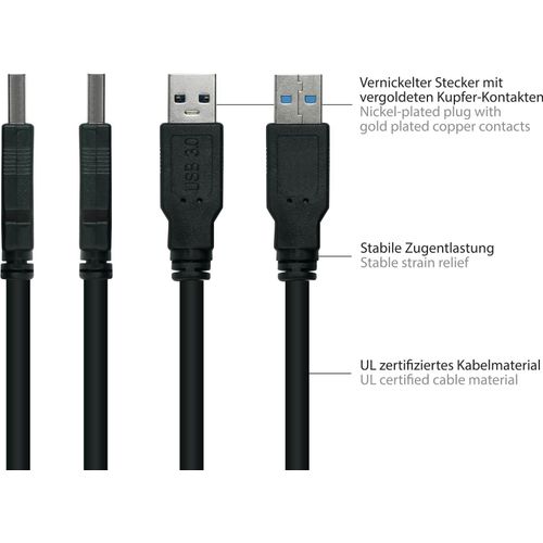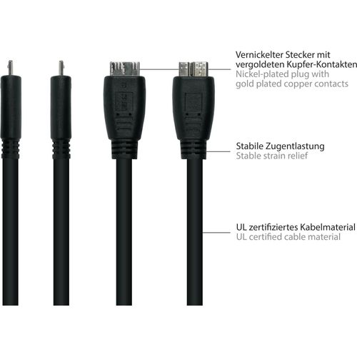 Alcasa UK30P-AMB-005S, 0.5 m, USB A, Micro-USB B, USB 3.2 Gen 1 (3.1 Gen 1), 5000 Mbit/s, Black