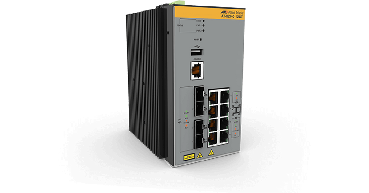 Allied Telesis ruggedized IE340 Industrial Ethernet switches provide enduring performance in harsh environments, such as those found in manufacturing, transportation and physical security. Offering high throughput, rich functionality and advanced security features, IE340 switches deliver the performance and reliability demanded by deployments in the age of the Internet of Things (IoT).
