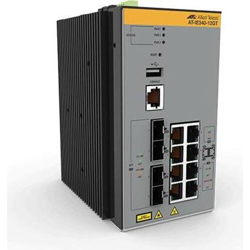 Allied Telesis AT-IE340-12GT-80, Managed, L3, Gigabit Ethernet (10/100/1000), Full duplex, Wall mountable