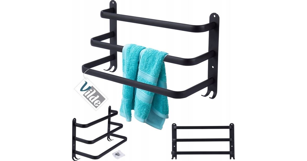 Aluminum towel rack, black, 40 cm