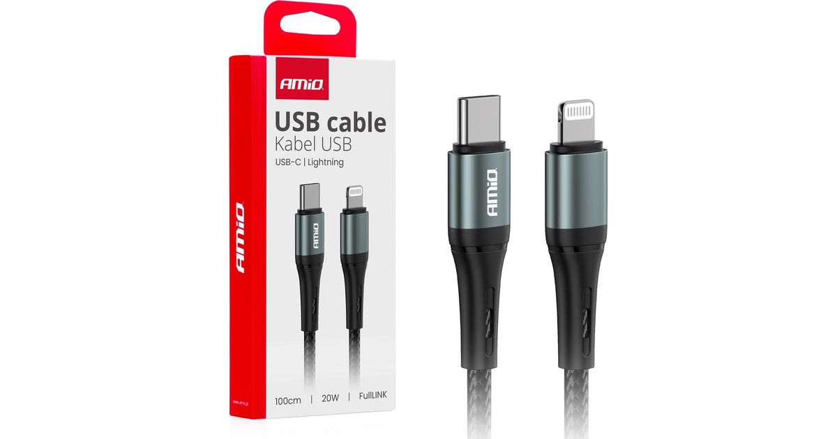 AMiO car charging cable USB-C charging cable - iPhone lightning 20w 100cm amio-03916