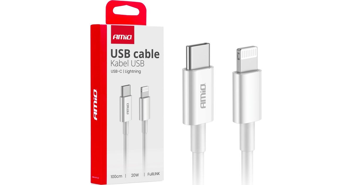 AMiO car charging cable USB-C charging cable - lightning iPhone PD 20w 100cm fulllink amio-03898