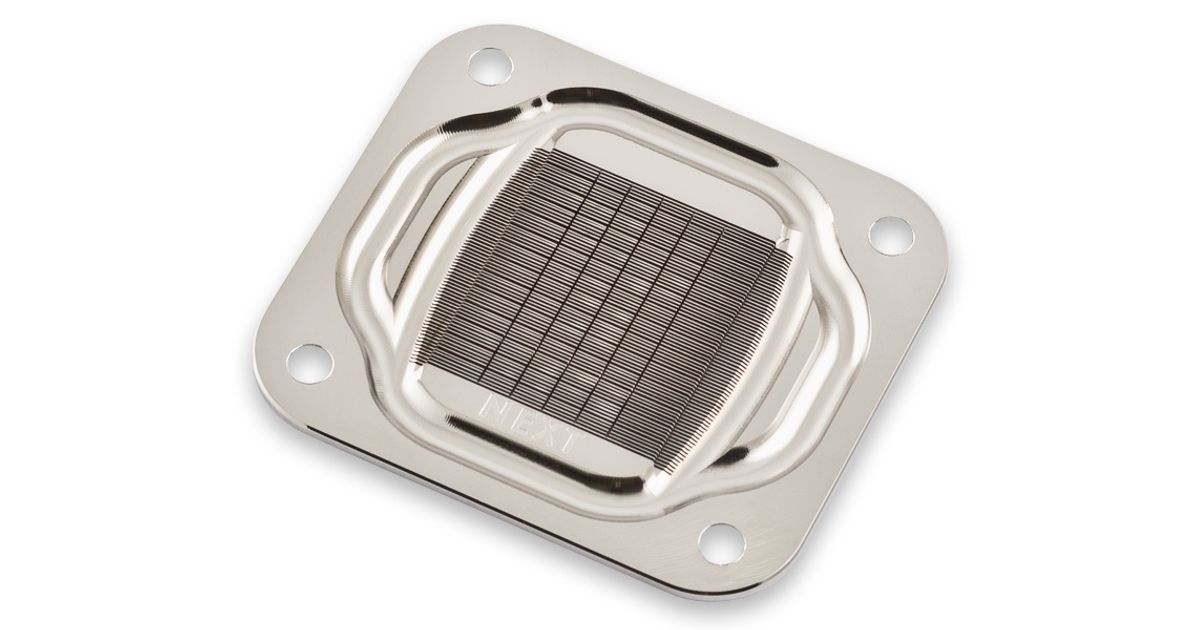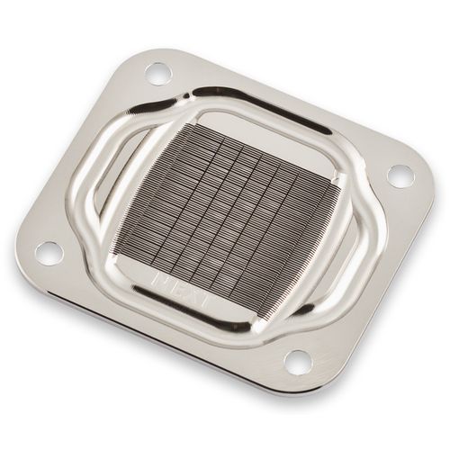 The base part of the cuplex kryos NEXT is equipped with an extremely fine micro structure, the structural width is lower than 200 µm. The coolant is injected centrally through a slot-shaped nozzle and then runs to both sides of the structure. The base itself is manufactured from copper, nickel plated copper or .925 sterling silver depending on model.
