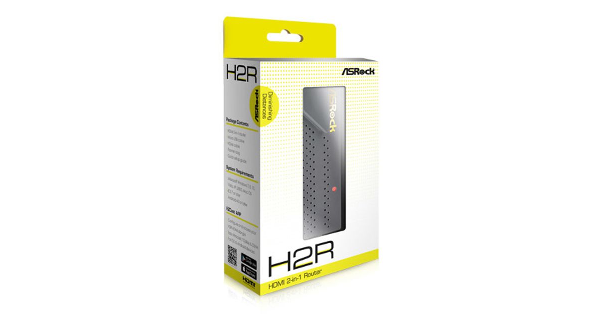 ASRock H2R is a portable travel router with IEEE 802.11n standards. When users are traveling or staying in hotels, it's pretty easy for them to share the LAN service with their family and friends. H2R is also a media streaming dongle that can be plugged into the HDMI port of your TV. It allows users to cast their favorite TV shows, movies, music, sports and games from mobile devices to the TV. H2R is fully compatible with various devices and different operating systems like iPhones, iPads, Android phones and tablets, Macs and Windows laptops. Most important of all, video streaming and other router functions can be used at the same time.