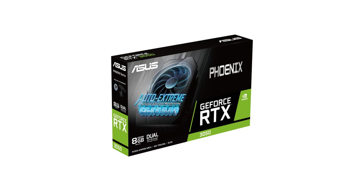 ASUS Phoenix PH-RTX3050-8G, GeForce RTX 3050, 8 GB, GDDR6, 128 bit, 7680 x 4320 pixels, PCI Express 4.0