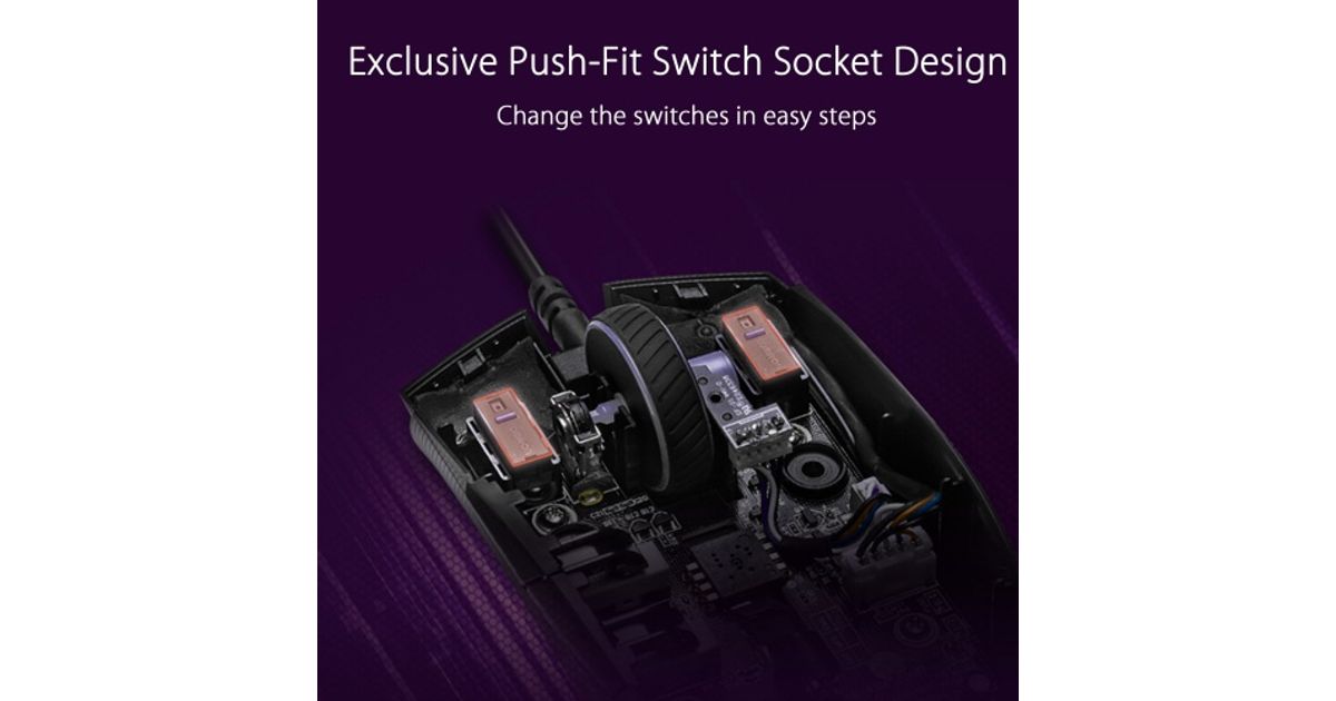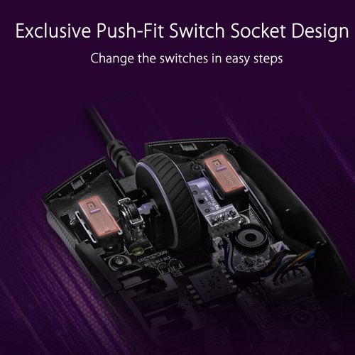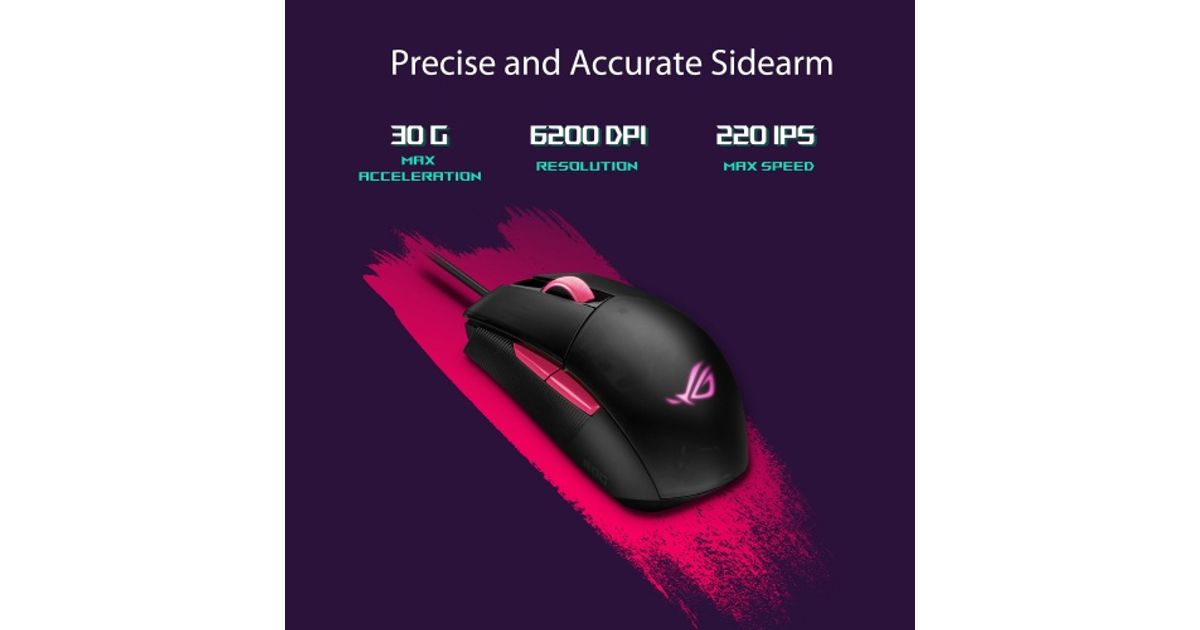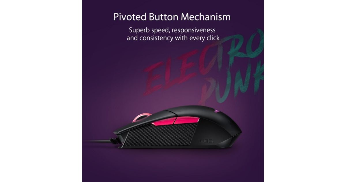ROG Strix Impact II Electro Punk is a lightweight, ambidextrous gaming mouse that delivers smooth action and superb flexibility. It features pivoted buttons and a soft-rubber cable for fast, tactile clicks and unhindered glides. There's also a 6,200 dpi sensor for pinpoint accuracy. As well, Impact II Electro Punk is equipped with an exclusive, push-fit switch socket design to extend its lifespan, a four-level adjustable DPI switch that makes it easy to vary sensitivity to match the way you play, and a semi-transparent cover for a final touch of style.