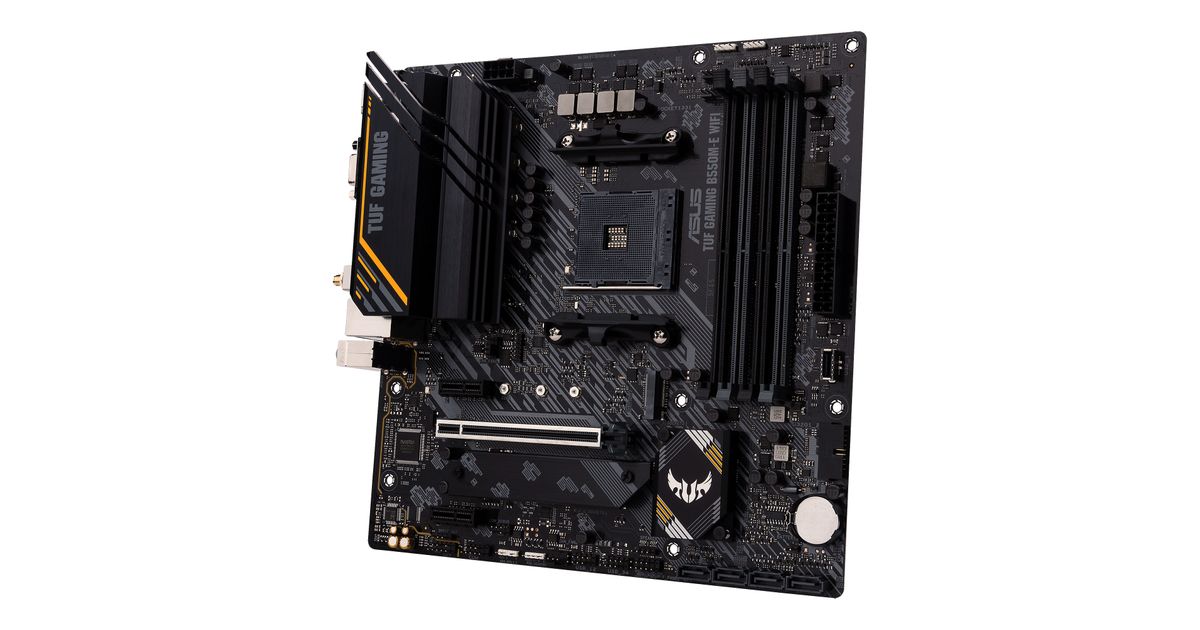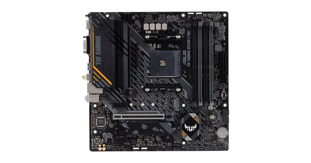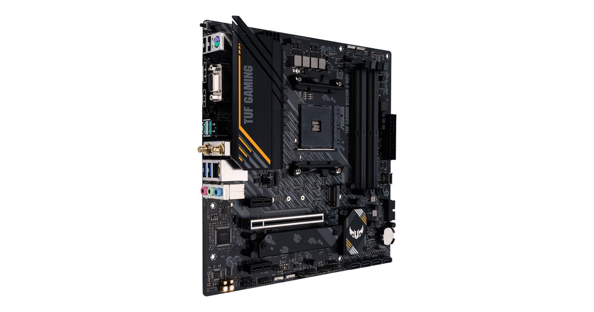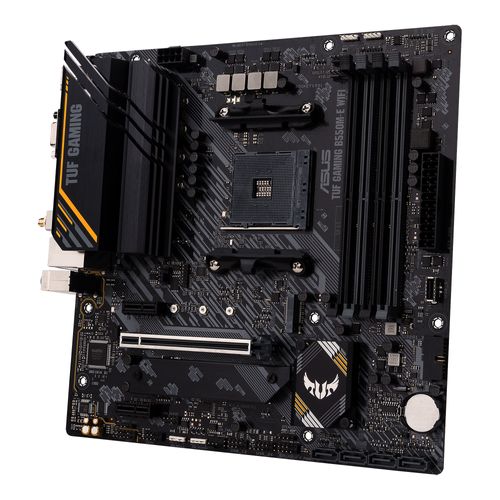 TUF GAMING B550M-E WIFI distills essential elements of the latest AMD platform and combines them with game-ready features and proven durability. Engineered with military-grade components, an upgraded power solution and a comprehensive set of cooling options, this motherboard delivers rock-solid performance with unwavering gaming stability.
