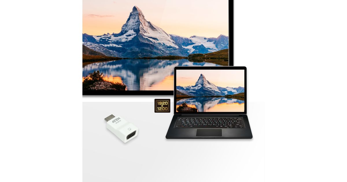 ATEN HDMI to VGA converter, White, Plastic, 1920 x 1200 pixels, 1080p, HDMI, VGA