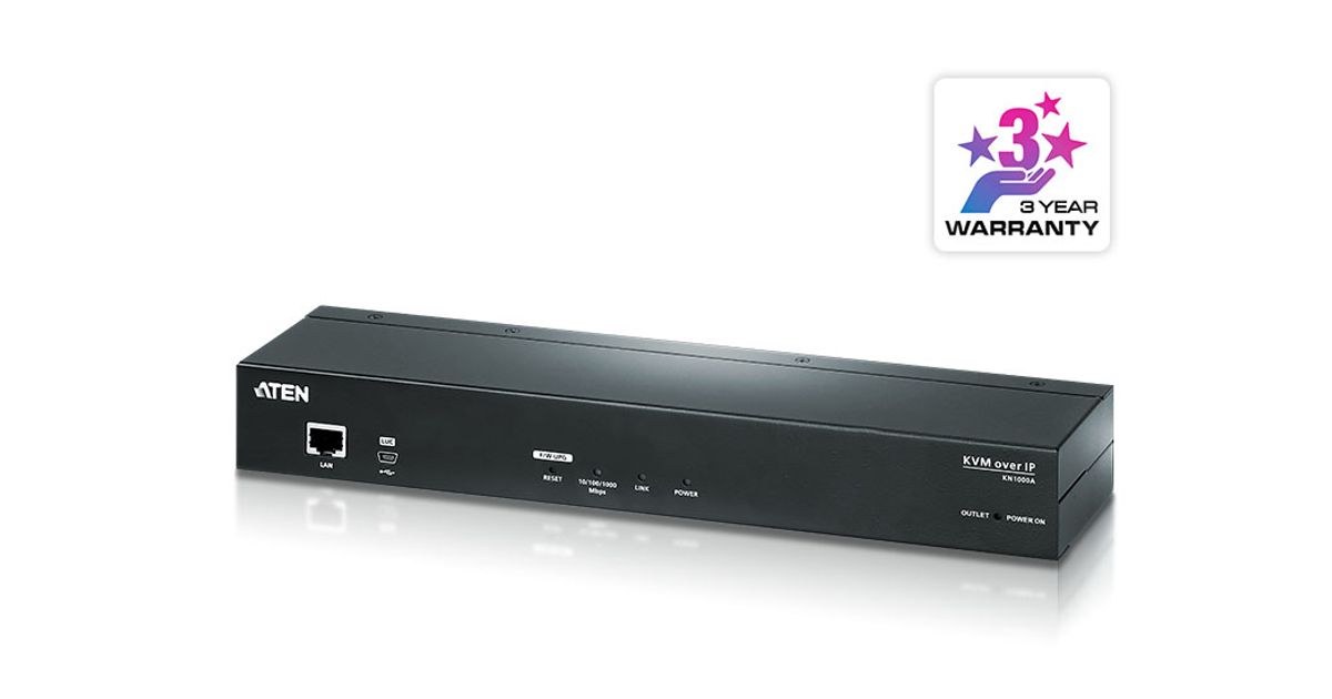 Aten Single Port KVM over IP Switch with Single Port Power Switch, 1920 x 1200 pixels, Ethernet LAN, WUXGA, Black