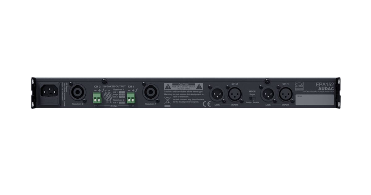 AUDAC EPA152, 2.0 channels, D, 0.1%, 90 dB, 150 W, 80 W