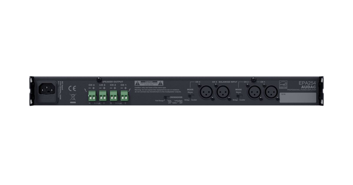 AUDAC EPA254, 4.0 channels, D, 0.1%, 90 dB, 250 W, 130 W