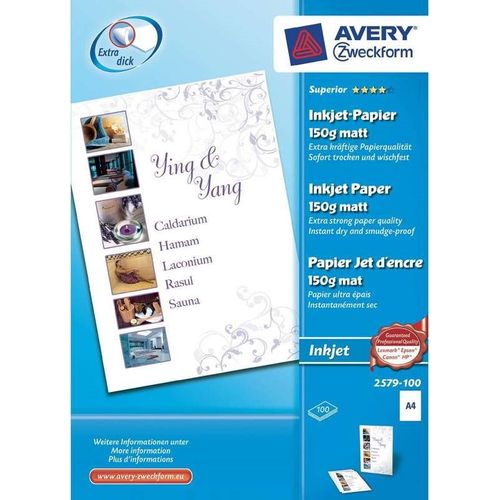 Avery 2579-100, Inkjet, A4, White, 100 sheets, Canon, Epson, HP, Lexmark standard inkjet printers, 210 mm