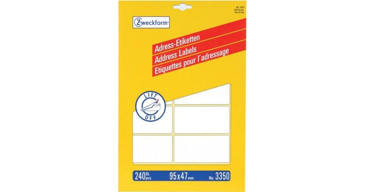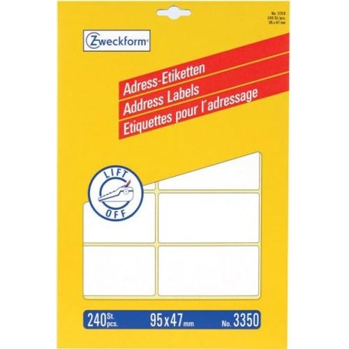 Avery 3350, White, Rounded rectangle, Permanent, 95 x 47 mm, Paper, 240 pc(s)