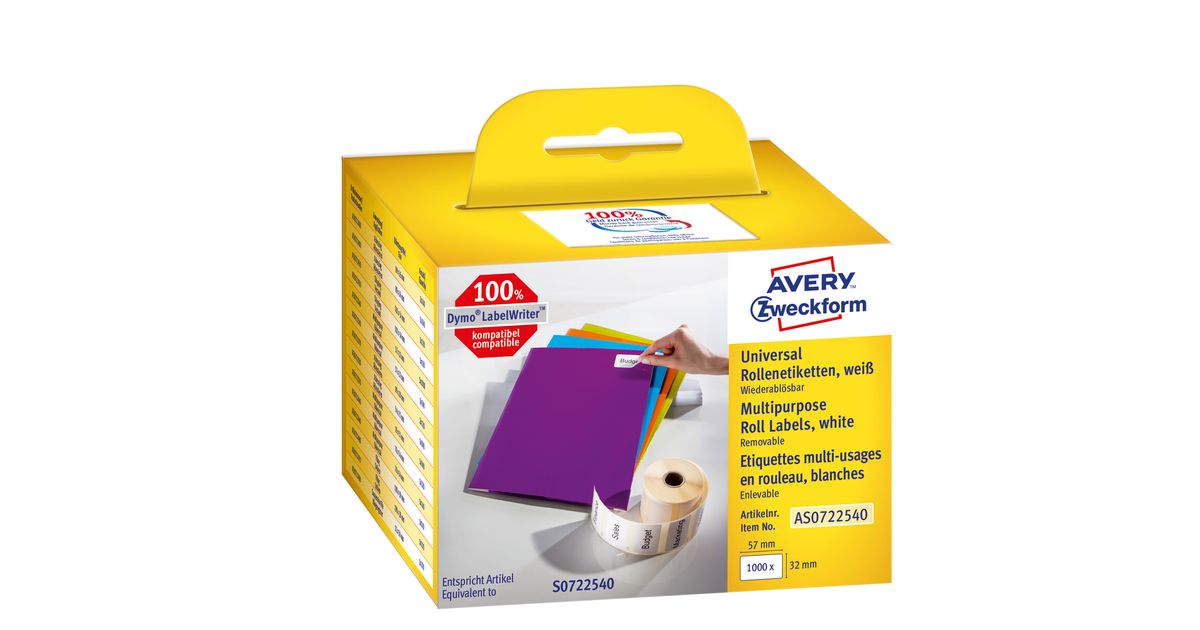 Avery Zweckform AS0722540, White, Rectangle, Removable, 32 x 57 mm, Rolle, Paper