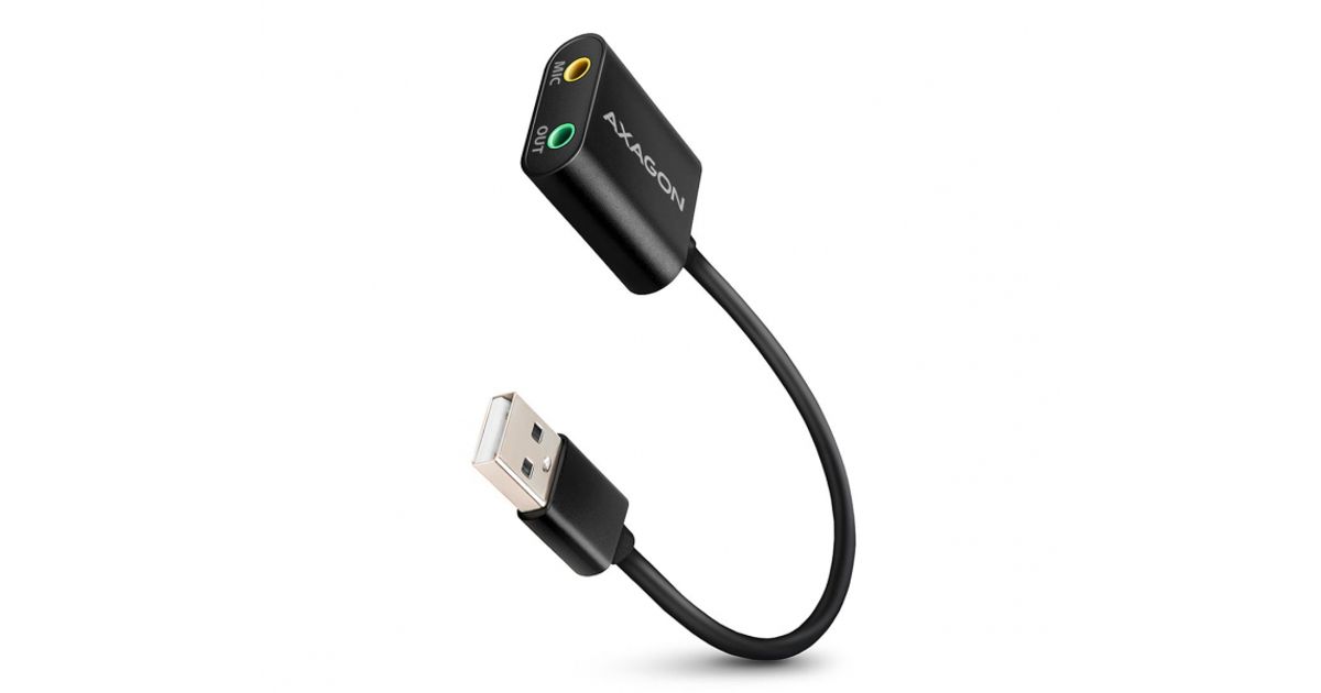 Axagon USB sound card with 15 cm cable and metal body.