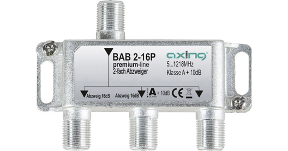 Axing BAB 2-16P, Cable splitter, 5 - 1218 MHz, Grey, A, 16 dB, F