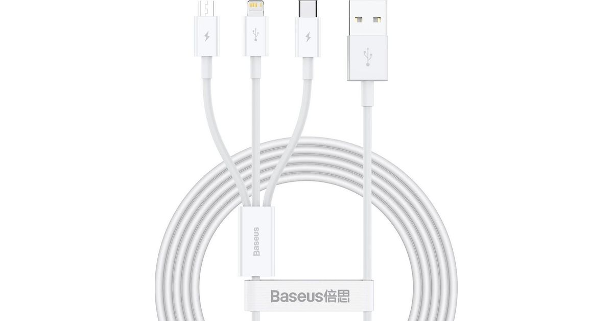 Baseus Superior, 1.5 m, USB A, USB C.Micro USB A/Lightning, USB 2.0, 480 Mbit/s, White