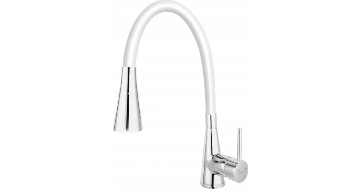 Bateria kuchenna Ferro Bateria zlewozmywakowa ZUMBA II, biała elastyczna wylewka 2F, chrom