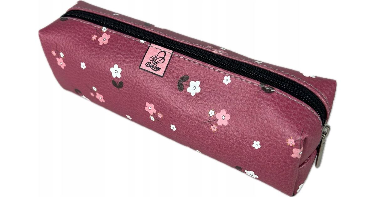 Bee-bee pencil case. Rectangular pencil case. Flowers on a cherry