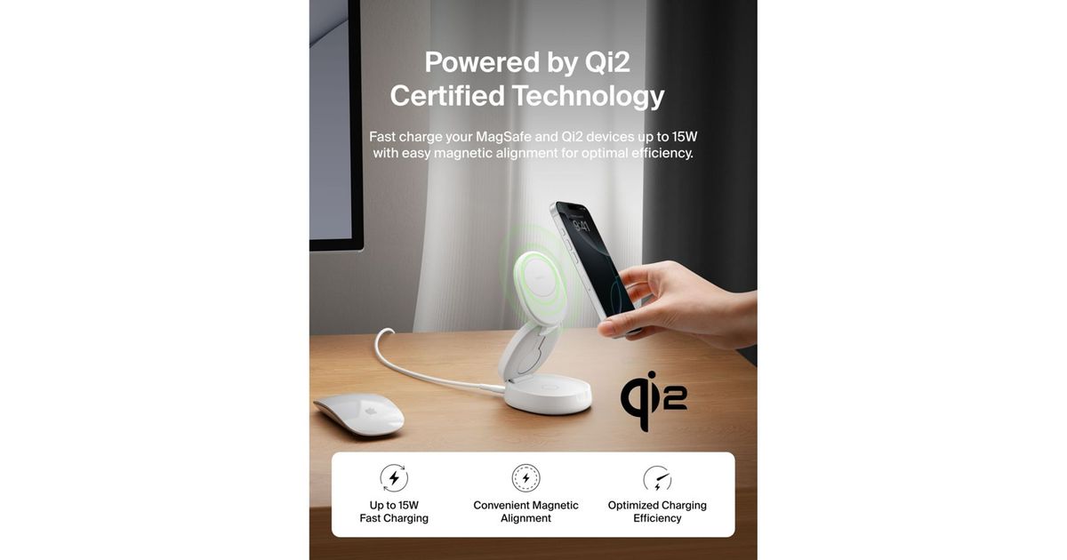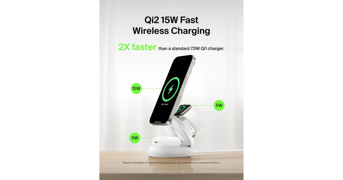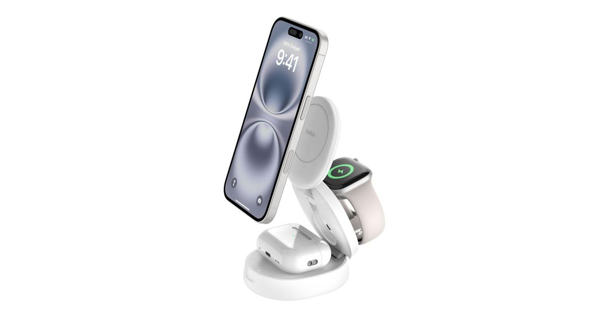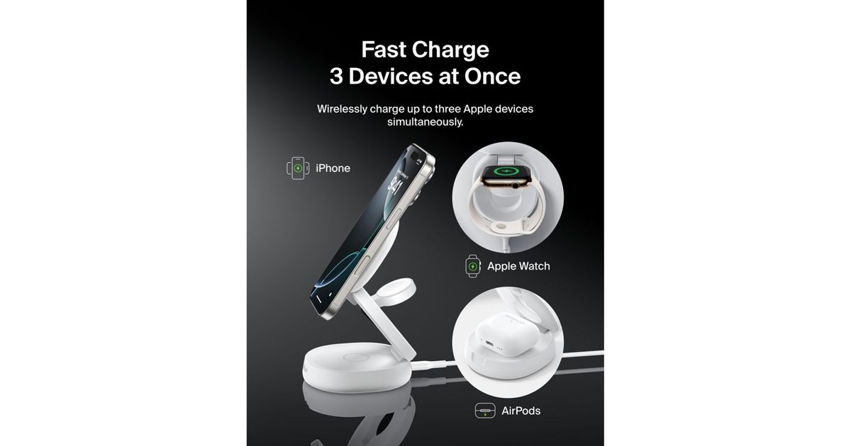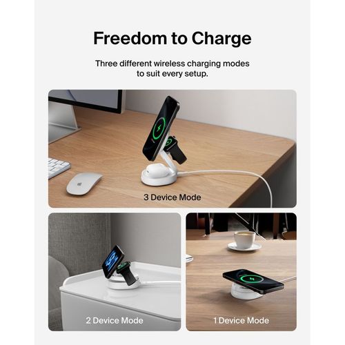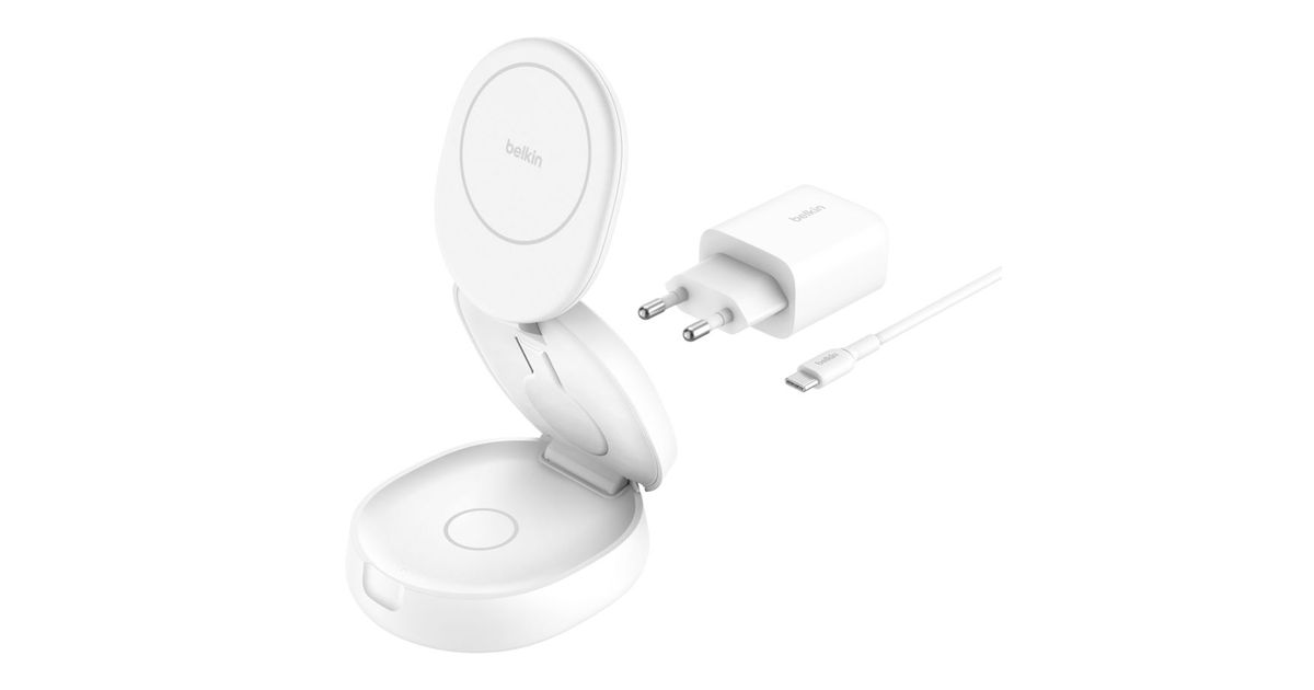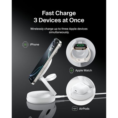• Belkin Boost Charge klappb. mag. 3-in-1 Lades. Qi2 ws. WIZ034kqWH