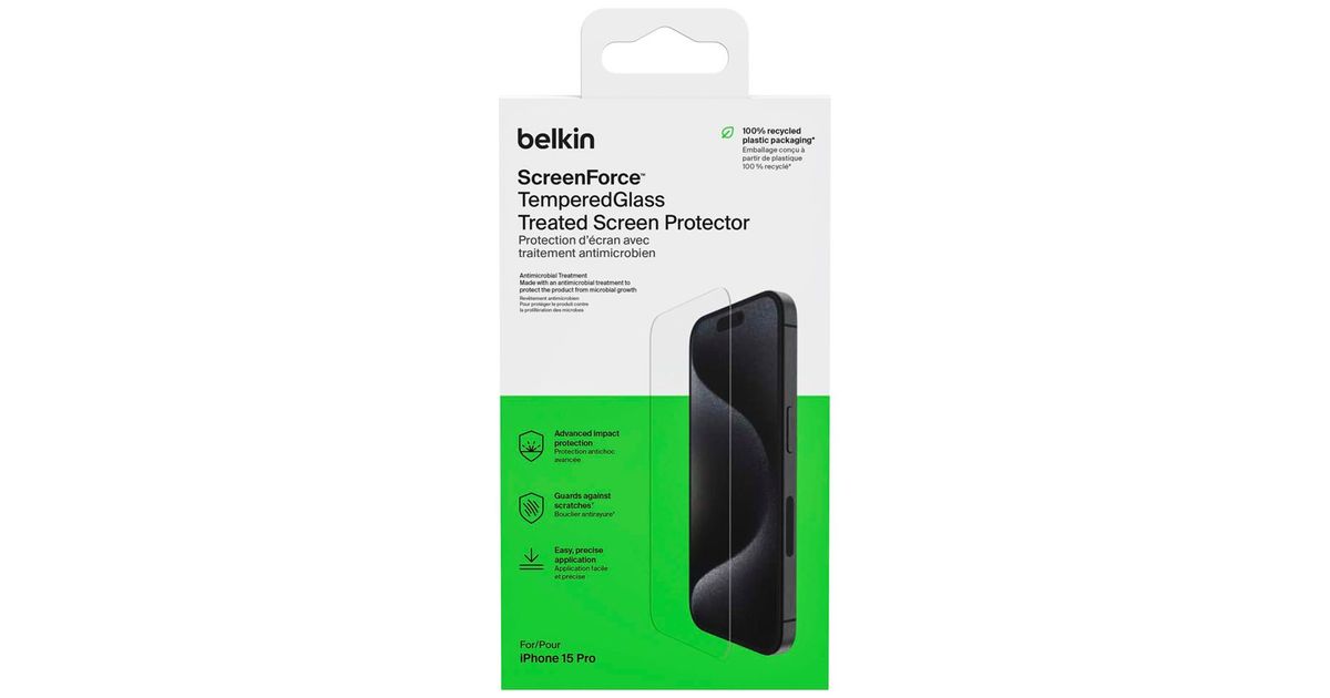 Belkin Screenforce Tempered Gl. antibakt. iPhone 15 Pro OVA137ZZ