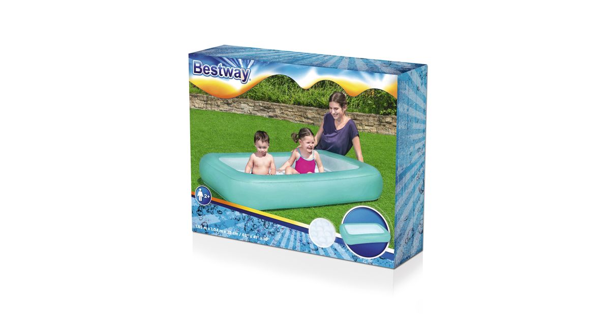 Bestway Aquababes Kiddie Pool 1.65 m x 1.04 m x 25 cm, Inflatable pool, 102 L, Rectangular, 2 yr(s), Blue