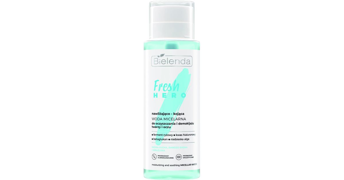 • BIELENDA Fresh Hero Nawilżająco-kojąca woda micelarna do oczyszczania i demakijażu twarzy i oczu 400 ml