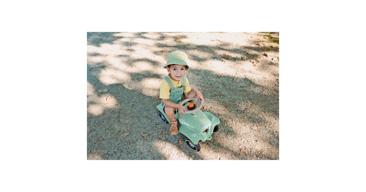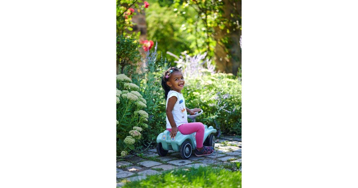 The seat is ergonomically shaped to provide good support for the child while driving the Bobby Car. Even older children can easily ride in the vehicle thanks to the additional knee space. The safety steering wheel is easy to hold and has a honk button. The trailer can be attached to the front and rear couplings as needed.