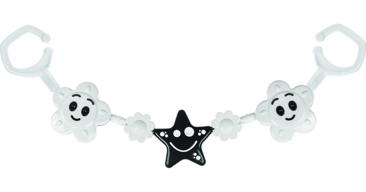 Black and white pram pendant, 2 flowers, a star