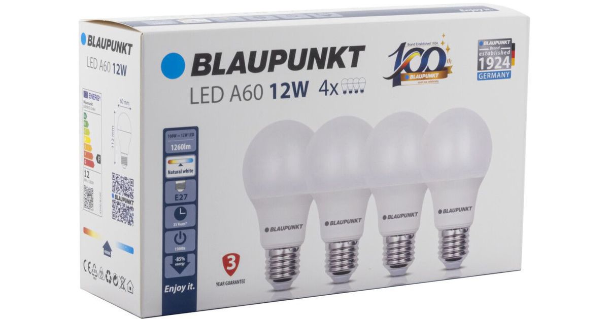 Blaupunkt LED lamp E27 12W 4pcs, natural white