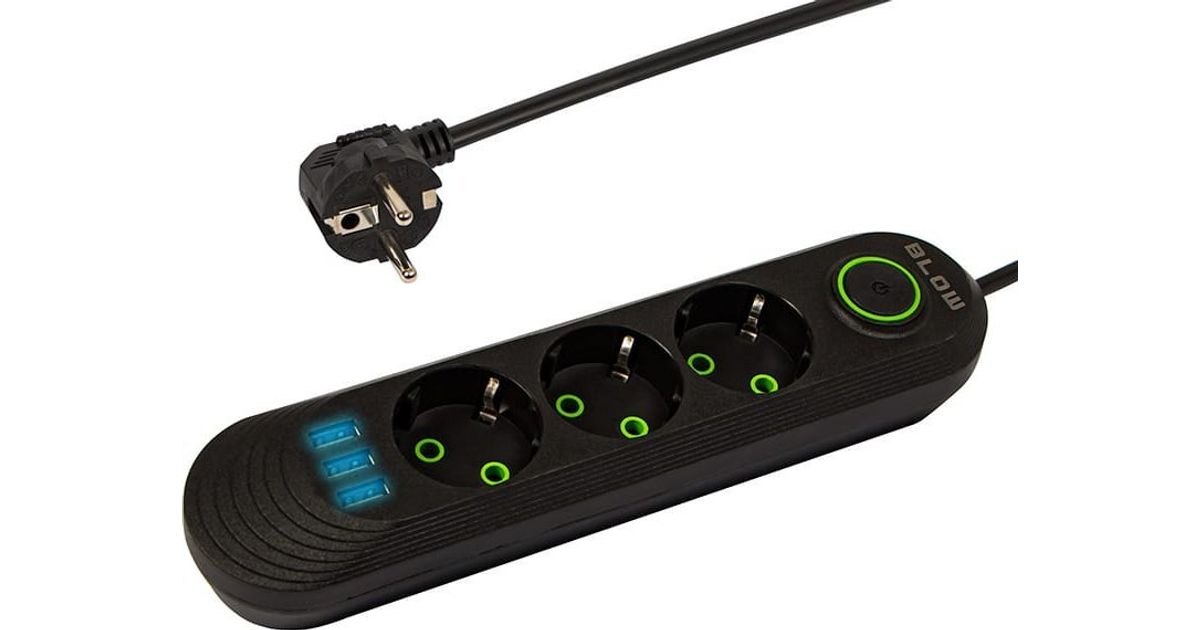 Blow 98-214# PS-330 network extension cable 3-sockets 3xUSB 3m black 2x1mm