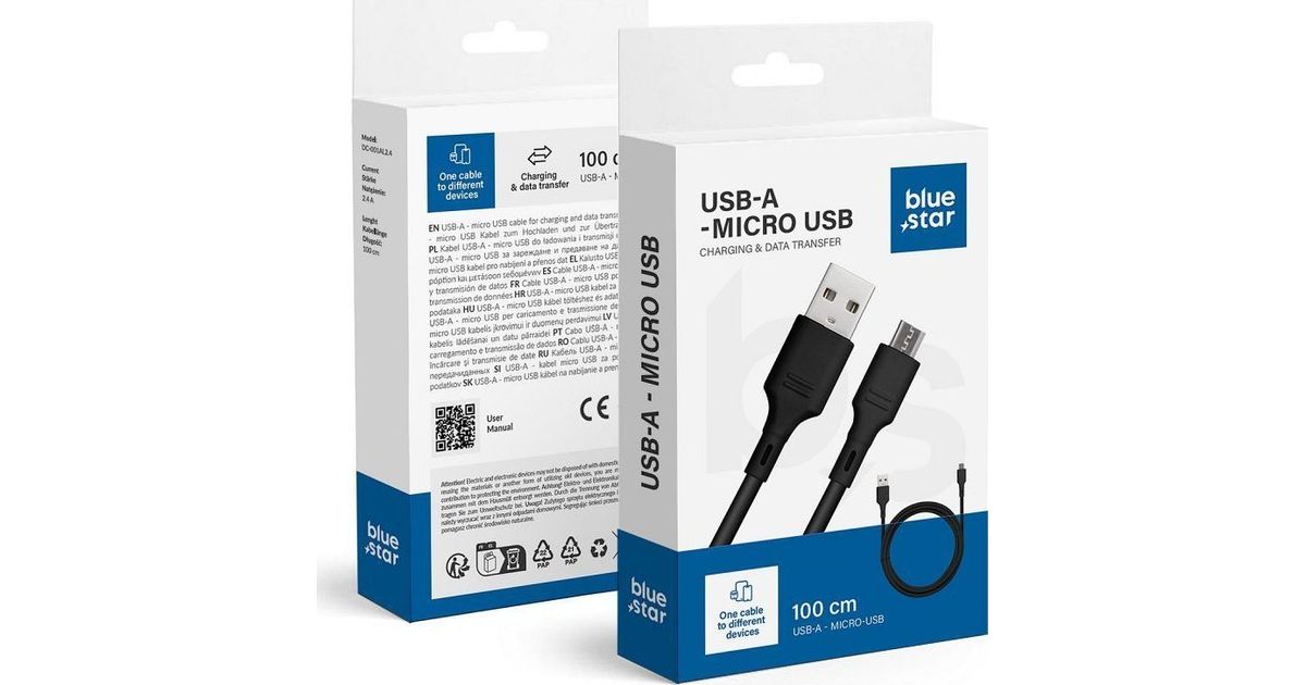 Bluestar USB cable BLUE STAR cable 2A USB A to Micro USB DC-001AM2.0 1 m black