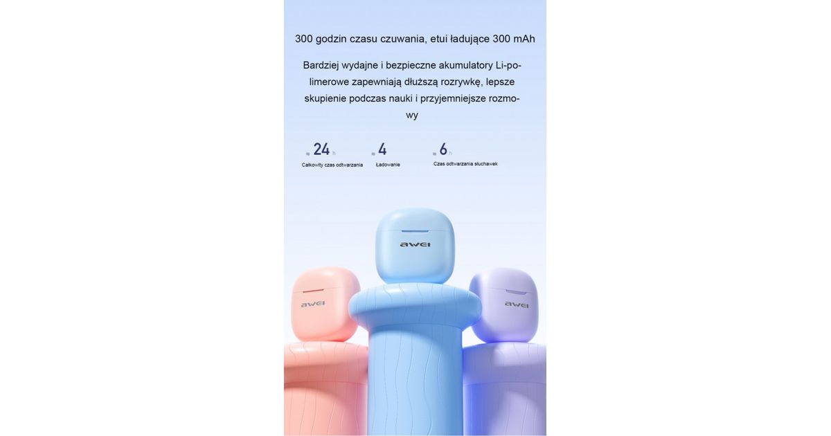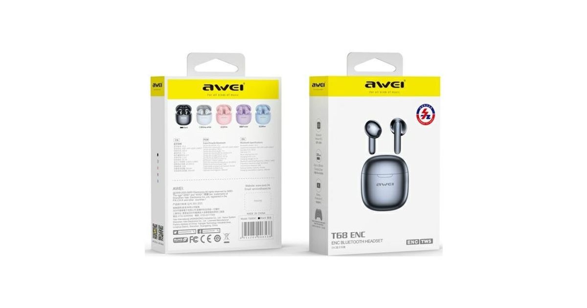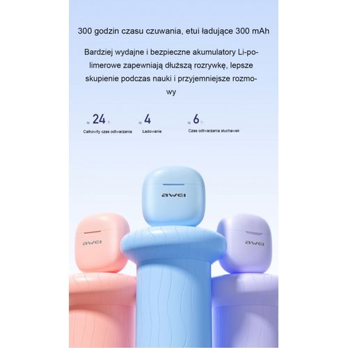 AWEI TWS Charging Base Headset with ENC and Bluetooth 5.3 Supports professional tuning and highly elastic composite diaphragms to create a natural stereo field, enhance the stability of sound quality, and reduce acoustic resonance and THD (total harmonic distortion) to improve sound clarity. It has Bluetooth 5.3, which enhances resistance to electromagnetic interference, no jams or disconnections, fast transmission and low power consumption for audio playback.