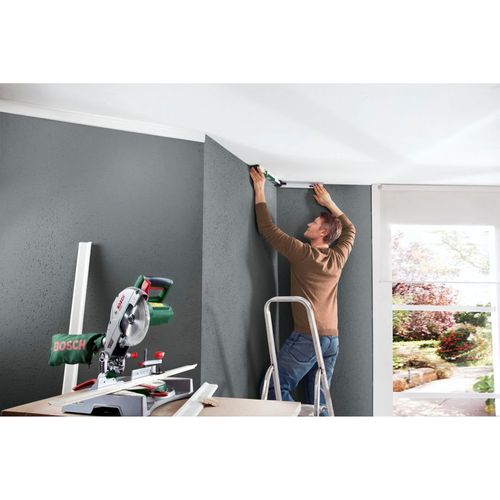 - One push of a button calculates single mitre angles, another double mitre angles for easy adjustment of the mitre saw