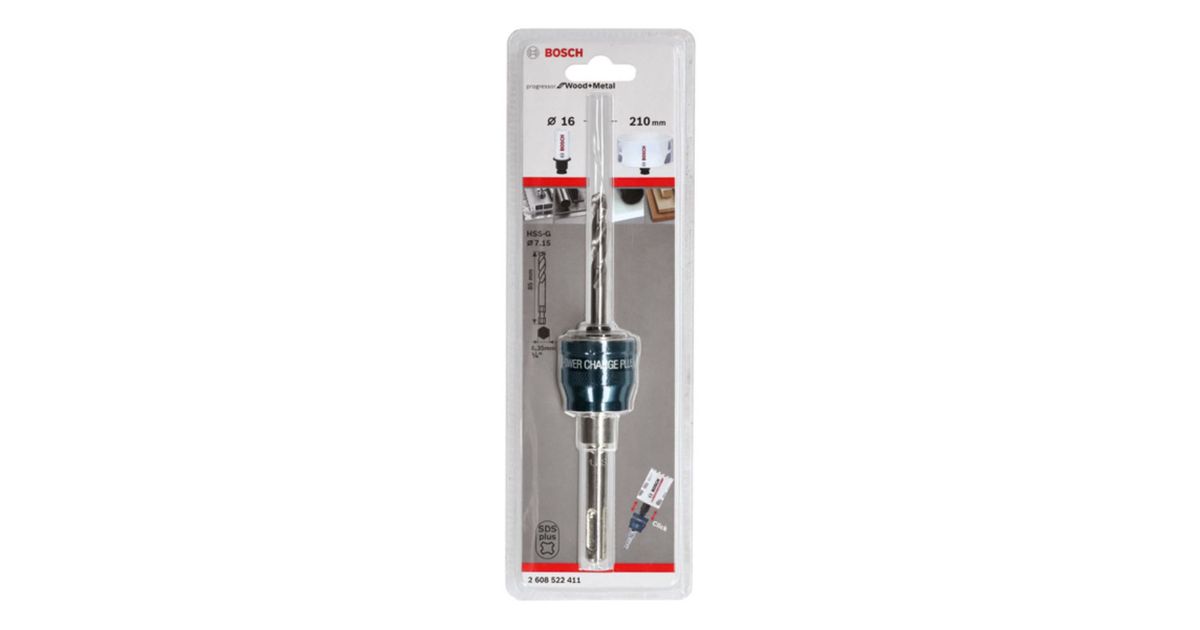 Bosch progressor for Wood+Metal Power-Change - Lochsägenadapter mit Bohrkopf - 7,15 mm - 6,35 mm - SDS-plus - Länge: 85 mm (2608522411)