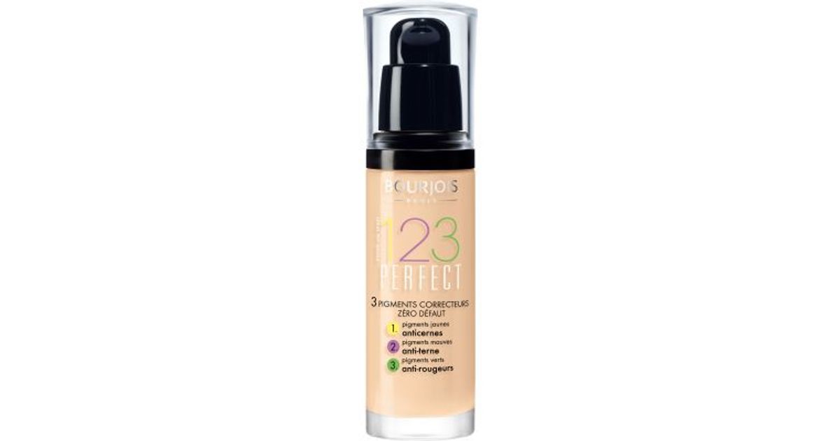 Start your day with Bourjois 123 Perfect Foundation for a flawless complexion even to perfection that lasts up to 16 hours. Its innovative formula combines 3 correcting pigments for flawless skin with zero imperfections: (1) Yellow pigments to conceal dark circles and give that rested look; (2) Mauve pigments to correct dullness and boost radiance; (3) Green pigments to neutralise redness for an even complexion.
