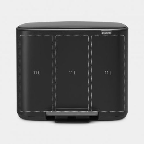 Looking for a beautiful solution for waste separation? This Brabantia Bo Pedal Bin has it all. Designed to make the planet and your home more beautiful with three 11 litre inner buckets for separating in style. More plusses: a space-saving design and the protective non-skid base keeping it steady and your floor safe. The lid hygienically opens with the lightest tap of your foot and closes slowly. Now that's separating in style!