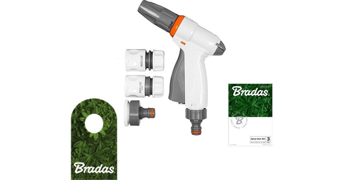 Set with adjustable spray gun WHITE LINE. Spray gun features: - patented way of switching water flow on and off - water flow adjustment - stream adjustment with 3 functions - made of the highest quality ABS Set includes: - adjustable spray gun WHITE LINE - quick connector 1/2 WHITE LINE - quick connector 1/2 with stop WHITE LINE - tap adapter 1-3/4